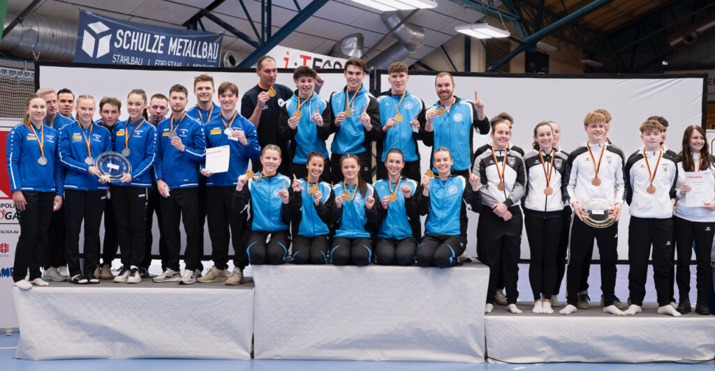 Mit dem umgekehrten Ergebnis zum Vorjahres-Finale in der Trampolin Bundesliga gewann heuer Herausforderer TG Dietzenbach (229,5) vor Rekordmeister MTV Bad Kreuznach (226,1) den Endkampf 2025 in der Anhalt Arena der Stadt Dessau. Für die TG Münster blieb mit 207,8 P. der Bronzeplatz, der TSVE Bielefeld schied nach dem Vorkampf aus. Erst mit der letzten Übung vor über 500 Zuschauern am Nikolaus Nachmittag wurde der Wettkampf im alles entscheidenden zweiten Kürdurchgang entschieden, bis dahin herrschte einmal mehr Spannung pur. Neben Sportlern aus den eigenen Reihen kamen zudem Gastspringer aus Brasilien, Mexiko, Niederlande, Belgien, Österreich, Tschechien und Ukraine zum Einsatz.