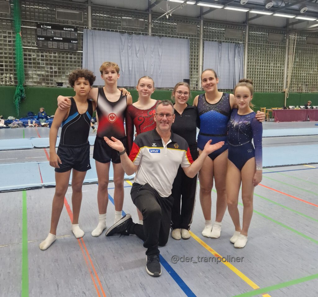 Die Trampolin Jugendliga in Hessen fand auch in diesem Jahr wieder in der zweiten Jahreshälfte statt und insgesamt wurden zuvor 25 Mannschaften gemeldet. Sie starteten in zwei Gruppen und nach der Vorrunde, die in den Monaten September, Oktober, November ausgetragen wurde, nahmen dann die jeweils drei besten Teams der Tabelle in einer Play Off Veranstaltung an der Endrunde teil. Diese wurde in Rüsselsheim ausgetragen und die Landesmeisterschaft 2025 gewann der ausgemachte Favorit TT Niedernhausen (255,5) recht eindrucksvoll vor Neuling SKYFLYER SC Steinatal (242,4) und TG Dietzenbach (237,5). Doch schon mit etwas Abstand die weiteren Nachwuchsgruppen TT Niedernhausen II (224,0), SKG Rodgau (222,9) und TV Dillenburg (222,8). Für die U 14 Nachwuchssportler einen Monat vor Weihnachten ein toller Jahresabschluss.